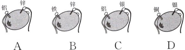 2. 在柠檬中插入两种不同的金属可以制得水果电池。相同条件下,两种金属活动性差异越大,电压越大。下列柠檬电池中电压最大的是(