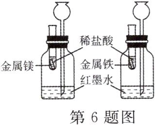 。(4)在室温条件下进行如图所示实验。试管内的镁和铁表面均被打磨过,且形状、大小均相同,向两支试管中同时加入相同质量分数的稀盐酸,可以观察到在相同时间内,两支长颈漏斗的液面高度不同,据此可得出的结论是