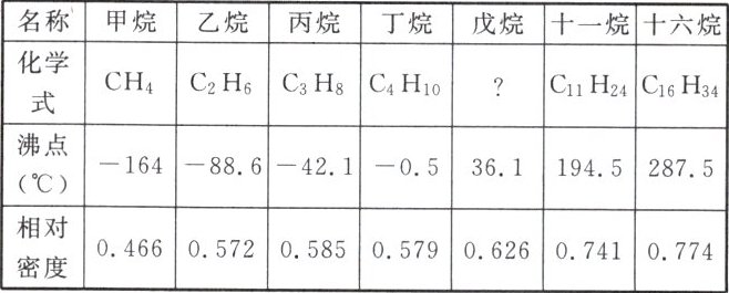 (3)随着碳原子数的增加,烷烃的沸点逐渐升高(或相对密度逐渐增大)