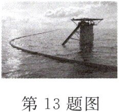 13. 近几年来有媒体报道,海洋里充满了固态垃圾,甚至在海龟体内也发现了塑料袋。如图所示是一种海底垃圾回收装置。该装置的工作原理是利用洋流,将海洋中漂浮的垃圾拦截下来并回收。这个 120m 长的回收装置是弧形的,由许多根空心的聚氨酯圆柱形短管道并排连接而成,短管下方连着 5m 深的用于拦截海洋垃圾的尼龙网。洋流经过尼龙网时,海洋垃圾会被拦在尼龙网里,而海洋生物则会随洋流从尼龙网下面游走。