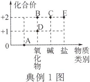 典例 1 如图所示是以铜元素的化合价为纵坐标、含铜元素的物质类别为横坐标所绘制的图像。例如 E 点可表示铜元素为+2 价的盐。回答下列问题: