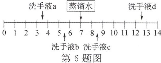 6. 不同品牌的洗手液,pH 一般不同,25℃时四种洗手液的 pH 如图所示。下列说法错误的是(