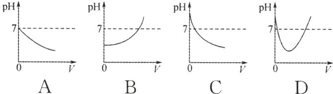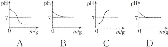 4. 将 NaOH 溶液用足量水稀释,下列关于该溶液的 pH 随加入水的质量变化的曲线正确的是(