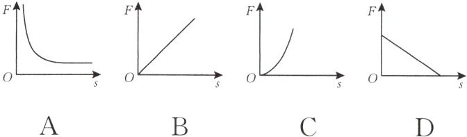 6. 已知力F所做的功是15J,则力F与物体在力的方向上通过的距离s的图像大致是(