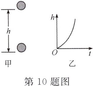 10. 如图甲是一小球从某高度处由静止下落h的过程,该过程中,路程h与时间t的关系如图乙,下列选项中,描述重力对该球做功大小与时间关系正确的图像是(
