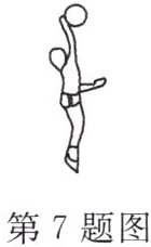 7. 在排球运动中,跳发球(如图所示)是最具威力的发球方式。现用100N的力击打重为5N的排球,排球离手后飞行落到15m远的地面上。排球飞行过程中,运动员对排球做功(