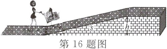 16. 如图所示,一顾客用一水平恒力F将购物车从粗糙斜坡的底端匀速推上顶端,斜坡长s,高h,购物车(含车上物品)重为G,在这个过程中,水平推力做的功为(