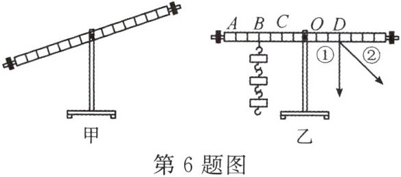 B.若在乙图中的A点用弹簧测力计拉杠杆使杠杆平衡,则此时杠杆可能是费力杠杆