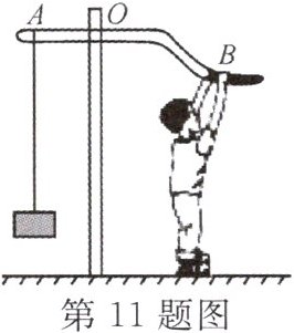 11. 如图是一种健身器械,AOB可视为一个杠杆,O是它的支点。