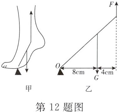 3. 动力臂:由图乙,动力臂$L_1 = 8cm + 4cm = 12cm$。