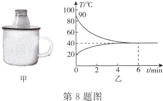 8. 将盛有凉牛奶的瓶子放在热水中(如图甲所示),通过