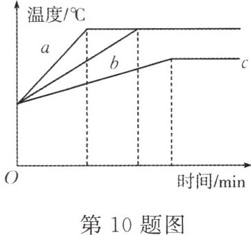 10. 分别用相同的热得快(一种加热工具)加热三种液体,加热时液体温度随时间变化的图像如图所示。下列分析不正确的是(
