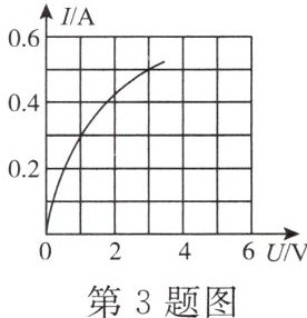 3. 如图所示是额定电压为3V的小灯泡的I-U变化关系图像。根据图像,下列关于小灯泡的一些物理量分析正确的是(