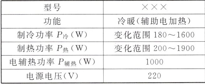 3. 小柯家新添了一台变频空调,部分参数如表所示。当室温和空调的设定温度相差较大时,变频空调一开机,即以最大功率工作,使室温迅速达到设定温度;当室温达到设定温度后,空调的制冷(热)功率随之减小,以维持室温基本不变。