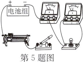 (4)灯丝电阻随温度升高而增大,第一次实验时灯丝温度较低,电阻为5Ω,闭合开关前温度更低,电阻更小