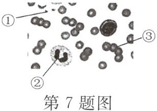 7. 如图所示是显微镜下观察到的人血涂片,对图中信息表述正确的是(