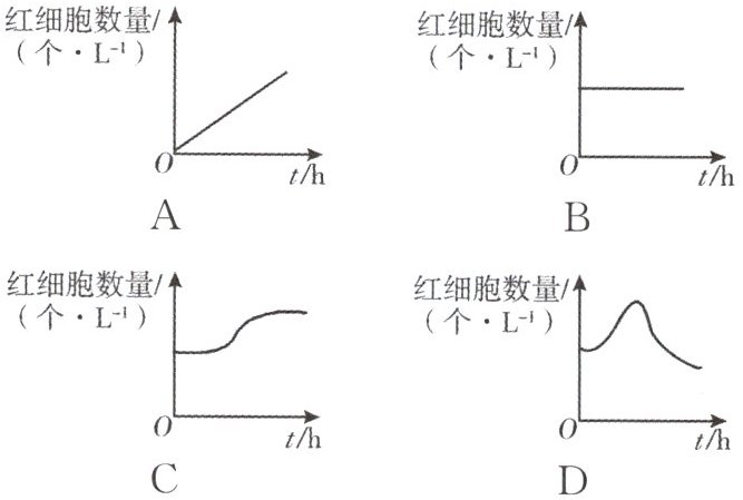 9. 下列曲线中,能正确表示人从平原迁移到 4000m 高原一段时间后,血液中红细胞的数量变化的是(
