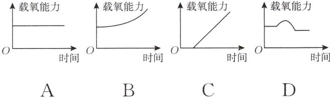 10. 持续性促红细胞生成素受受体激动剂(简称 CERA)是一种兴奋剂。该药物能在短期内持续促进红细胞的载氧能力。请你推测:服用 CERA 后的一定时间内,体内红细胞载氧能力变化曲线图应该是(