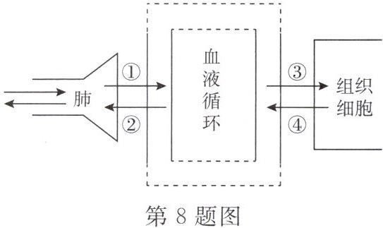 8. 如图所示是人体呼吸全过程的示意图: