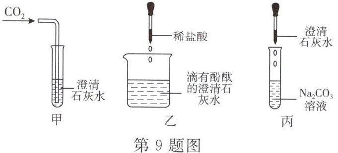 9. 如图所示是探究 Ca(OH)₂ 的部分性质的实验,回答下列有关问题: