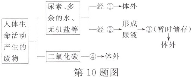 10. 人体的排泄途径概念图如图所示,下列相关叙述错误的是 (