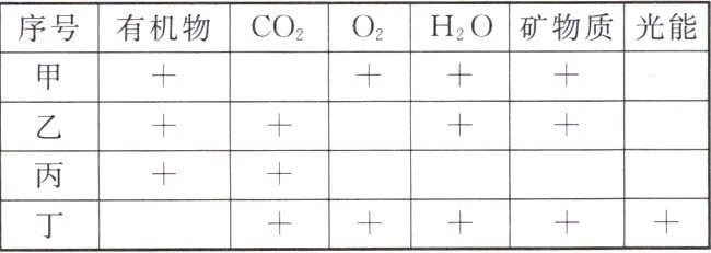 12. 下表列出的四种外界条件中,适宜异养生物和自养生物生存的依次是(“+”表示需要这样的环境条件) (