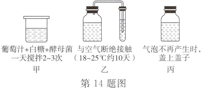 14. 如图表示葡萄酒的酿制过程,请据图分析:
