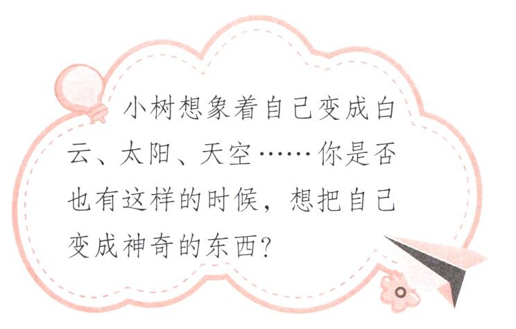 “外面的世界一定很美妙!”小树羡慕地说,仿佛自己变成了一个太阳,把光辉洒向了美丽的山川河流。