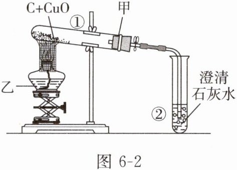 【典例 2】“火法炼铜”历史悠久,有“中华第一刀”之称的马家窑文化青铜刀使用的铜,就是用这种方法获得的。古人将木炭和孔雀石 [主要成分为 $ {Cu_{2}(OH)_{2}CO_{3}} $ ] 高温灼烧制得铜。小琴同学用实验室中的木炭和氧化铜进行了图 6 - 2 所示的炼铜实验,回答下列问题。