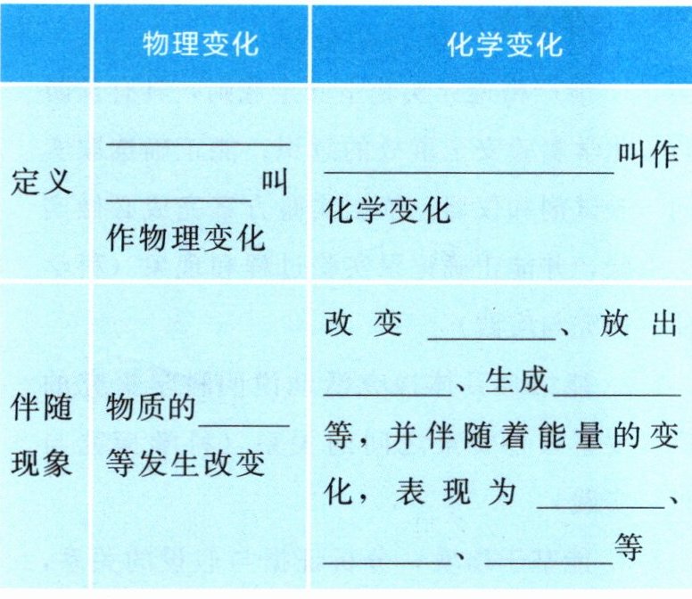 没有生成其他物质的变化;生成其他物质的变化;状态、形状;颜色;气体;沉淀;吸热;放热;发光