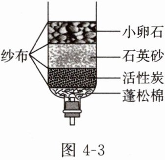 【典例 2】项目式学习小组利用自制的简易净水器 (如图 4 - 3 所示) 处理黄河水样。下列对水样处理过程的分析错误的是 (