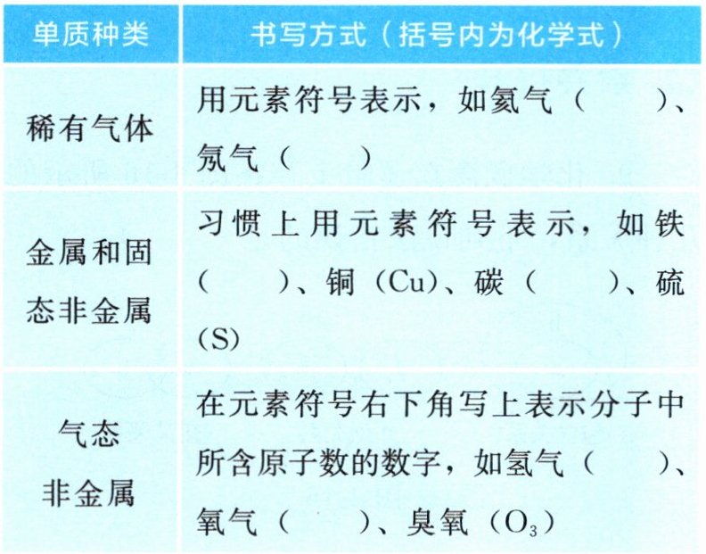 3. 单质化学式的书写方式