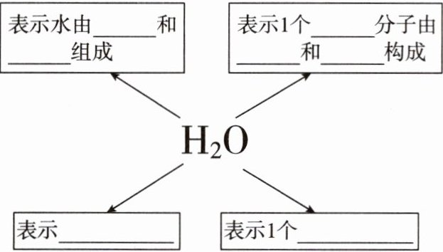 氢元素 氧元素 水 2个氢原子 1个氧原子 水这种物质 水分子