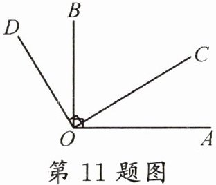 11. 如图, $ \angle A O B=90^{\circ}, \angle D O C=90^{\circ} $, 若 $ \angle A O C=32^{\circ} $, 则 $ \angle B O D=$
