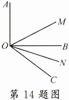 14. 如图, $ O B $ 在 $ \angle A O C $ 的内部, 已知 $ O M $ 是 $ \angle A O C $ 的平分线, $ O N $ 平分 $ \angle B O C $, 若 $ \angle A O C=120^{\circ}, \angle B O C=40^{\circ} $, 则 $ \angle M O N=$