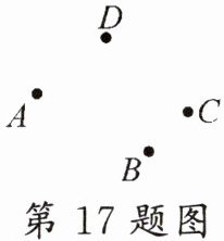 17. (本题 6 分) 如图, 某地有四个村庄 $ A, B, C, D $, 为了解决缺水问题, 当地政府准备修建一个蓄水池。请你确定蓄水池 $ P $ 的位置, 使它到四个村庄的距离之和最小。请在图中画出点 $ P $ 的位置, 并说明理由。