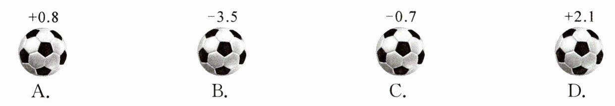 4. 若足球质量与标准质量相比,超出部分记作正数,不足部分记作负数,则下面4个足球中,质量最接近标准的一个是(