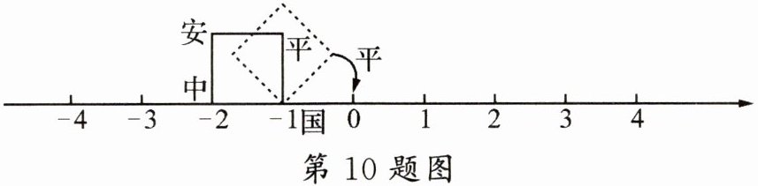 10. 如图,在正方形的四个顶点处标上“平”“安”“中”“国”四个字,将正方形放置在数轴上,其中“中”“国”对应的数分别为$-2$和$-1$,现将正方形绕着顶点按顺时针方向在数轴上向右无滑动地翻滚(例如,第$1$次翻滚后,“平”所对应的数为$0$),则连续翻滚后,数轴上的数$2025$所对应的字是(
