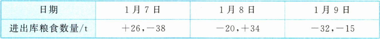 例 3 某粮库 1 月 7—9 日这三天内进出库粮食数量记录见下表(“+”表示进库,“-”表示出库)。