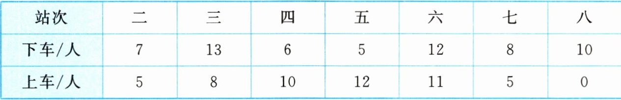 11. 某市一公交车从起点到终点共有8个站,一天,公交车从起点开往终点,在起点站开出时上了一部分乘客,从第二站开始下车、上车的乘客数见下表。