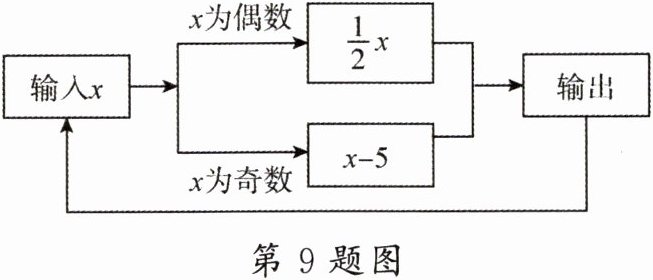 9. 如图,在这个数据运算程序中,若开始输入的x的值为4,输出的结果是2,返回进行第2次运算则输出的是1……则第2025次输出的结果是(