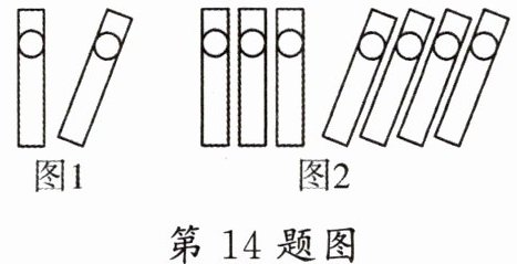 14. 中国人最先使用负数,魏晋时期的数学家刘徽在“正负术”的注文中指出,可将算筹(小棍形状的记数工具)正放表示正数,斜放表示负数,根据刘徽的这种表示法,图1表示的数值为$(+1)+(-1)=0$,则可推算图2表示的数值是