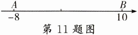 11. 如图,在数轴上,点$A$,$B$表示的数分别是$-8$,$10$。点$P$以$2$个单位长度$/s$的速度从点$A$出发沿数轴向右运动,同时点$Q$以$3$个单位长度$/s$的速度从点$B$出发沿数轴在点$B$,$A$之间往返运动。当点$P$到达点$B$时,点$Q$表示的数是