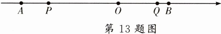 13. 如图,点$A$,$B$分别位于原点$O$的两侧,$AB = 12$,且$OA = 2OB$,动点$P$从点$A$出发以$3$个单位长度$/s$的速度向右运动,同时动点$Q$从点$B$出发以$1$个单位长度$/s$的速度向左运动。