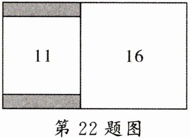 22. (本题6分)如图,长方形内有$2$个相邻的正方形,面积分别为$11$和$16$。