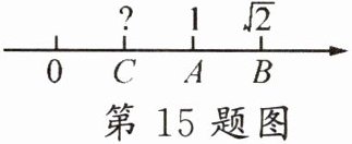15. 如图,数轴上表示1,$\sqrt{2}$的对应点分别为A,B,点B到点A的距离和点C到点A的距离相等,则点C表示的数是