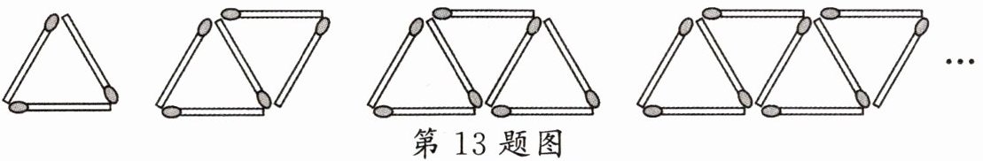 13. 按图示的方法搭 $1$ 个三角形需要 $3$ 根火柴棒,搭 $2$ 个三角形需要 $5$ 根火柴棒。设共搭成 $n$ 个三角形,则需要的火柴棒根数是