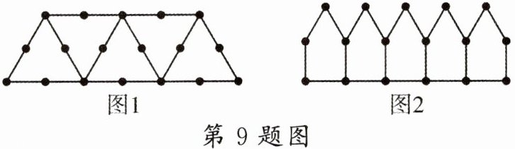 9. 如图1所示,搭1个三角形需要6根火柴棒,搭2个三角形需要10根火柴棒;如图2所示,搭1个五边形需要5根火柴棒,搭2个五边形需要9根火柴棒;按图1、图2的方法搭2026个三角形比搭2025个五边形所用的火柴棒的根数多(