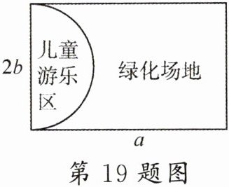 19. (本题6分)为了打造社区居民幸福“生活圈”,某市准备在秀湖公园修建一个长为$a m$,宽为$2b m$的长方形休息区。其中半圆形是儿童游乐区,其余为绿化场地,该半圆形儿童游乐区的直径为$2b m$。