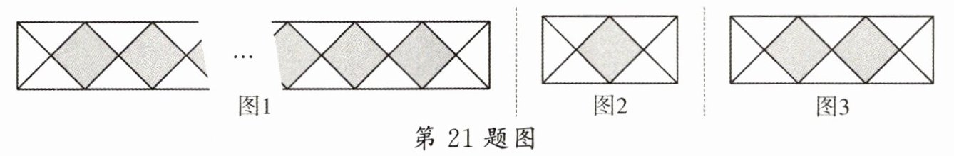 21. (本题6分)某长方形人行道由相同的灰色正方形地砖与相同的白色等腰直角三角形地砖排列而成,图1表示此人行道的地砖排列方式,其中正方形地砖为连续排列。